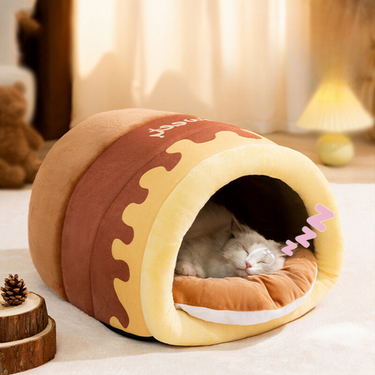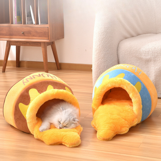 Cozy Honey Pot Winter Cat Bed - Warm & Stylish Pet Accessory