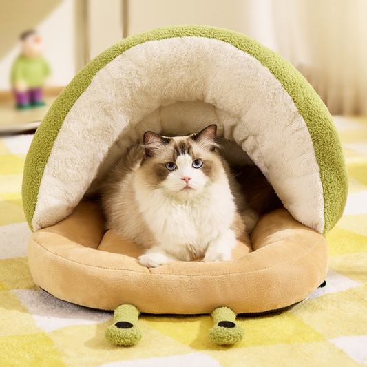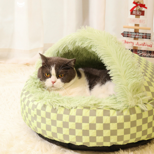 Cozy Semi-Enclosed Cat Bed for Winter Warmth & Comfort