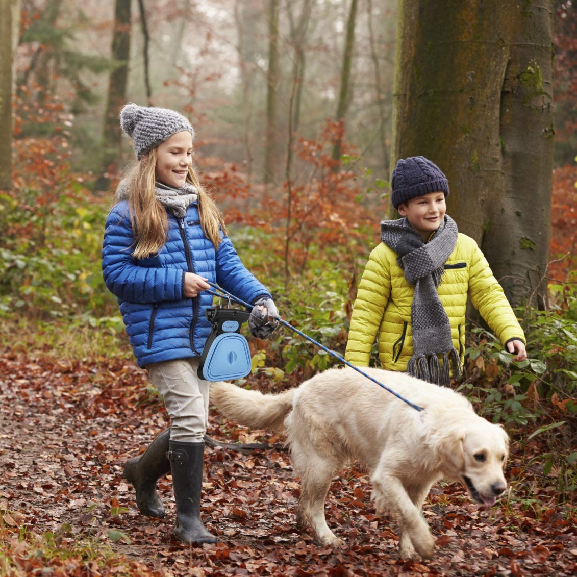 Available in two sizes for dogs under and over 50 lbs, this scooper conveniently attaches to your dog's leash for easy transport—get yours today!