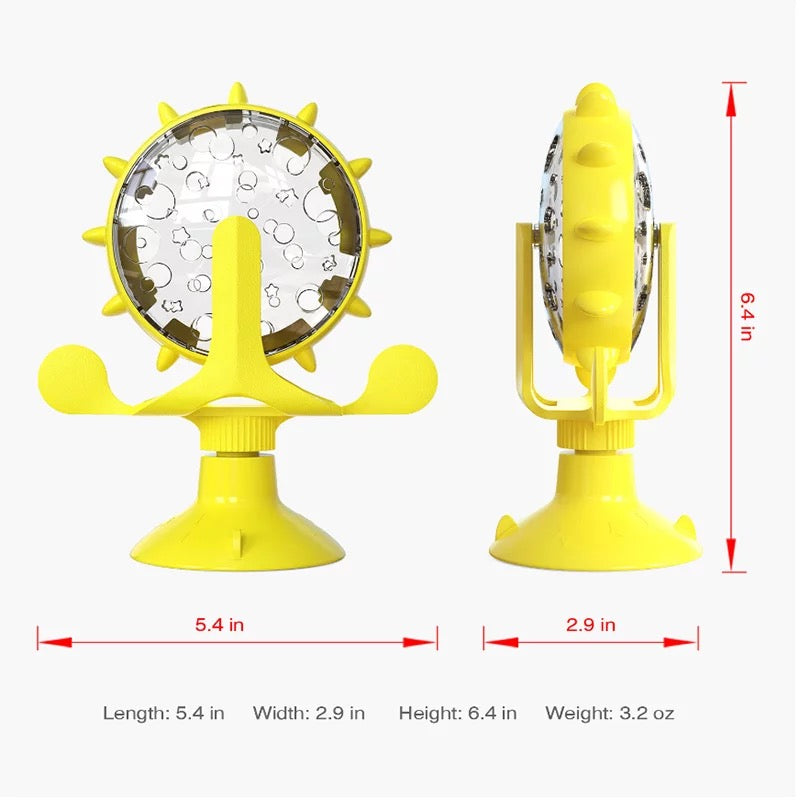 Enhance your pet's well-being with our Pet Dispenser Toys, designed to promote both mental stimulation and physical activity. Made from high-quality, non-toxic ABS and TPR materials, this interactive windmill toy features a secure suction cup design and a 360-degree rotating mechanism for endless fun. Easy to refill and perfect for small to medium-sized pets, keep your furry friend entertained and active—order yours today!